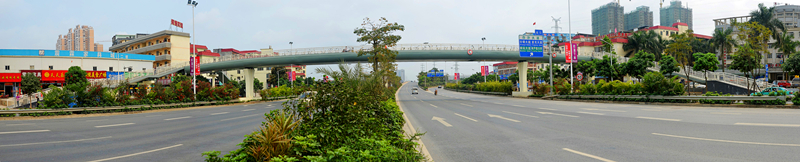 該橋位于白沙友誼立交南側,橫跨在白沙大道,人行天橋工程主體:長75.5米,寬5米,面積377.5平方;步梯:總長111.2米,寬3米,面積333.6平方;主體及梯道均為鋼箱梁結構,工程總造價為535萬,項目施工單位為廣西房都建設工程有限公司,監(jiān)理單位為廣西建科工程監(jiān)理有限責任公司,2015年10月底進場施工,于2015年12月底已經全部完工并初步驗收工作。