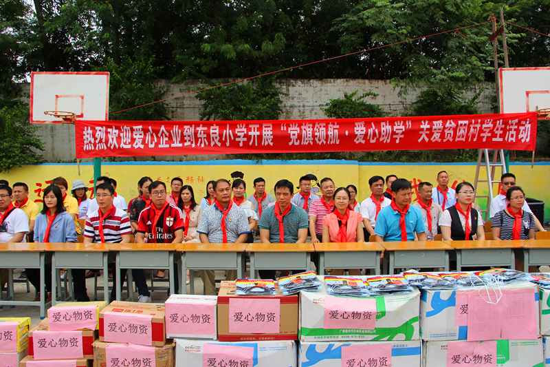 5月31日,“六一”國(guó)際兒童節(jié)前夕,由南寧市委組織部、市兩新組織黨工委協(xié)調(diào)經(jīng)開區(qū)、高新區(qū)兩新組織黨工委主辦的“黨旗領(lǐng)航·愛心助學(xué)”關(guān)愛貧困村學(xué)生活動(dòng)在馬山縣百龍灘鎮(zhèn)龍昌小學(xué)和喬利鄉(xiāng)東良小學(xué)舉行,綠港集團(tuán)黨委積極加入此次愛心助學(xué)行列。當(dāng)天,綠港集團(tuán)黨委連同經(jīng)開區(qū)、高新區(qū)兩新組織黨組織及個(gè)人、企業(yè)一起,共同為龍昌小學(xué)、東良小學(xué)640名學(xué)生捐贈(zèng)了校服1200套、文具700套,以及運(yùn)動(dòng)器械、戶外移動(dòng)音箱以及飲料、食品等愛心物資一批,價(jià)值約15.8萬元。