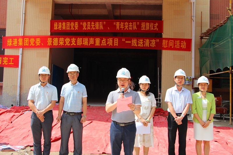 當(dāng)天,驕陽(yáng)似火。綠港集團(tuán)黨委書記、董事長(zhǎng)、總經(jīng)理龔國(guó)強(qiáng)莊重地給黨員們授予“黨員先鋒隊(duì)”紅旗,給青年突擊隊(duì)員們授予“青年突擊隊(duì)”紅旗,并提出了幾點(diǎn)要求:一是要緊緊圍繞項(xiàng)目建設(shè)開(kāi)展突擊活動(dòng)。全體黨員干部和青年同志要充分發(fā)揚(yáng)不怕吃苦、勇于負(fù)重,敢打硬仗、能打硬仗的優(yōu)良傳統(tǒng),切實(shí)發(fā)揮“黨員先鋒隊(duì)”、“青年突擊隊(duì)”在“急、難、險(xiǎn)、重”任務(wù)中的生力軍作用。二是要把項(xiàng)目建設(shè)與錘煉黨員意志相結(jié)合。黨員干部和青年同志們要充分發(fā)揮模范帶頭作用,深入項(xiàng)目一線,了解項(xiàng)目建設(shè)困難,想方設(shè)法協(xié)調(diào)解決。要在項(xiàng)目建設(shè)中增強(qiáng)本領(lǐng)、錘煉意志、增強(qiáng)黨性,更好的服務(wù)入?yún)^(qū)企業(yè)建設(shè)發(fā)展。三是要充分發(fā)揮“黨建帶團(tuán)建”作用?!包h員先鋒隊(duì)”要引導(dǎo)和指導(dǎo)好“青年突擊隊(duì)”開(kāi)展好項(xiàng)目建設(shè),黨員干部與青年同志們要相互關(guān)心,密切配合,充分發(fā)揮整體功能和團(tuán)隊(duì)精神,確保瑞聲廠房項(xiàng)目能在6月25日完工交付9號(hào)廠房、7月25日完工交付3、13號(hào)廠房的任務(wù)目標(biāo)。