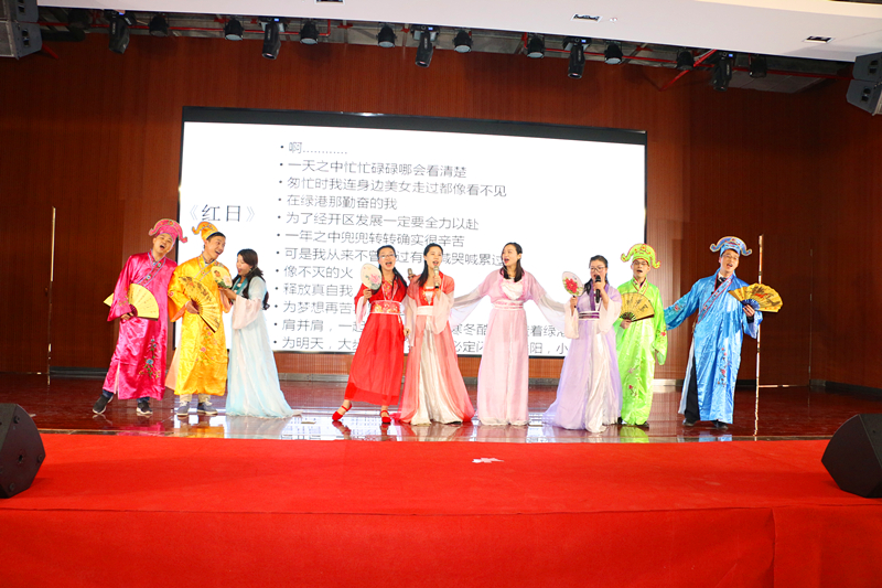 隨后,來自集團(tuán)工程管理部林重胤以及嘉通公司潘青青甜蜜獻(xiàn)唱《告白氣球》,讓大家感受到了愛情的絲絲美好。嘉通公司的《夸夸咱公司》,用三句半的表演形式唱出了綠港集團(tuán)濃濃的企業(yè)文化情愫,也展現(xiàn)了綠港員工積極、拼搏、向上的精神?!段乙鼐G港》、《聲臨其境》、《好運(yùn)來》、《愛》、《好嗨喲》等多個(gè)節(jié)目在觀眾的熱情掌聲中聯(lián)袂奉上一場精彩演出,整個(gè)活動(dòng)歌聲笑聲、熱烈的掌聲匯成了歡樂的海洋。集團(tuán)營銷管理中心的《四小天王齊賀歲》以及集團(tuán)計(jì)劃運(yùn)營部、紀(jì)檢監(jiān)察審計(jì)部、安全監(jiān)督部聯(lián)合帶來的《蒙面唱將猜猜猜》將活動(dòng)推向高潮,現(xiàn)場掌聲不斷。快板《綠港贊歌》道出了綠港集團(tuán)成立五載,綠港人用智慧和汗水所取得的成效。最后,集團(tuán)領(lǐng)導(dǎo)班子壓軸出場,帶來詩歌朗誦《相信未來》,贏得陣陣掌聲,讓大家堅(jiān)定了信心、鼓足了干勁,對(duì)美好生活更加熱愛和向往。