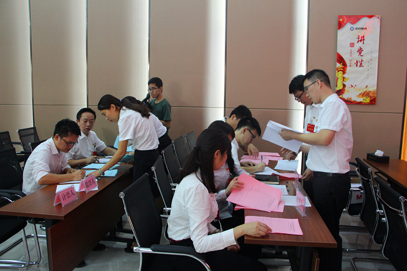 在投票階段,與會黨員們認(rèn)真填寫選票,為黨委、紀(jì)委委員選舉投出了自己神圣的一票。隨后,總監(jiān)票人、監(jiān)票人、計票人緊張有序地開展計票工作。