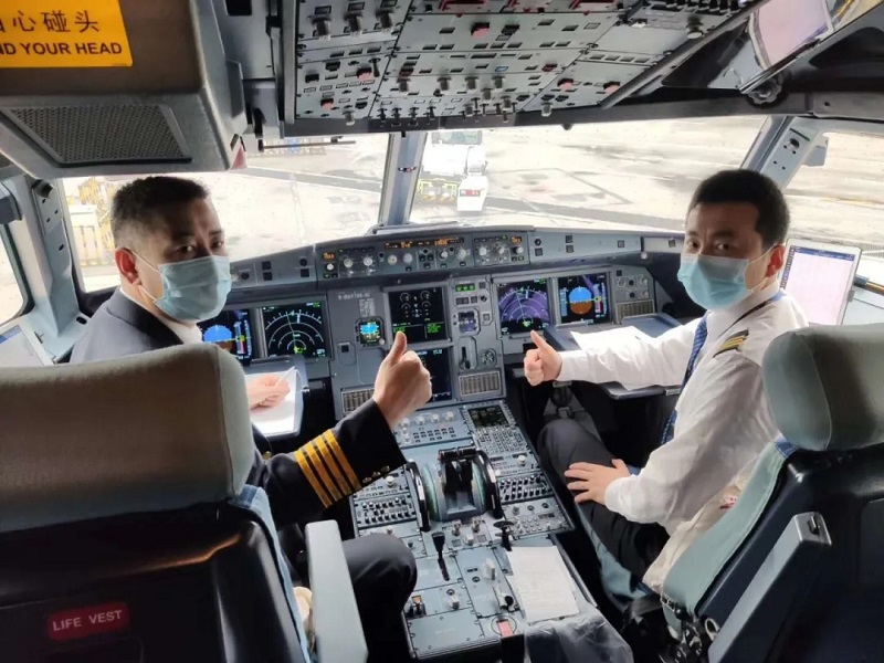 醫(yī)療隊員和飛機乘務(wù)人員合影留念。