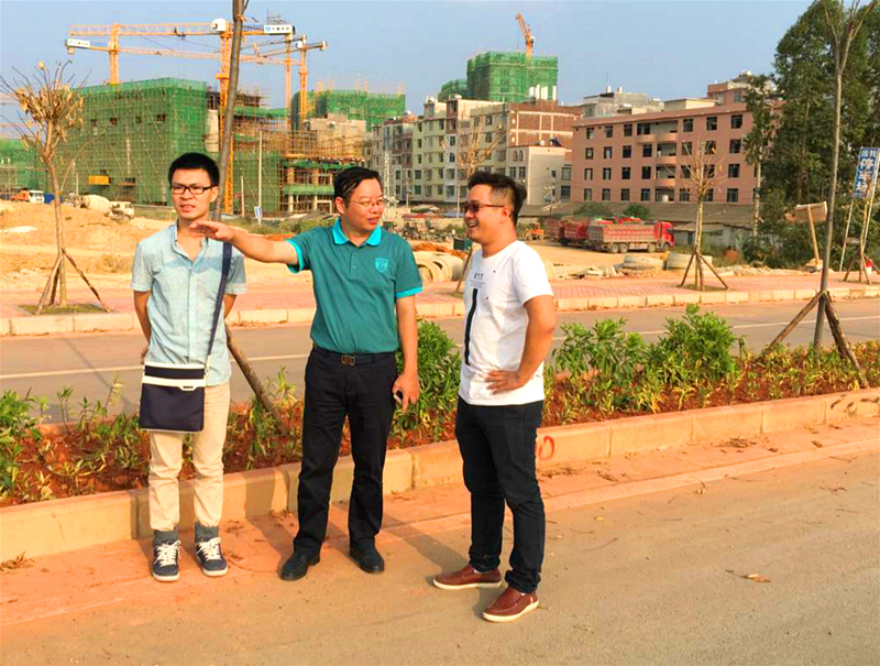 榮鑫公司總經(jīng)理李汝埠到光明路綠化項目檢查(梁付臻)