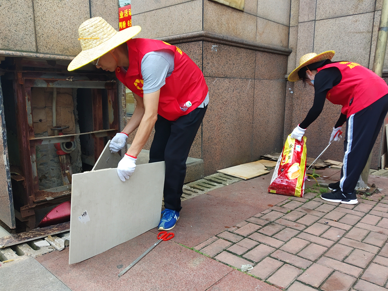 志愿者清掃沿街鋪面衛(wèi)生死角