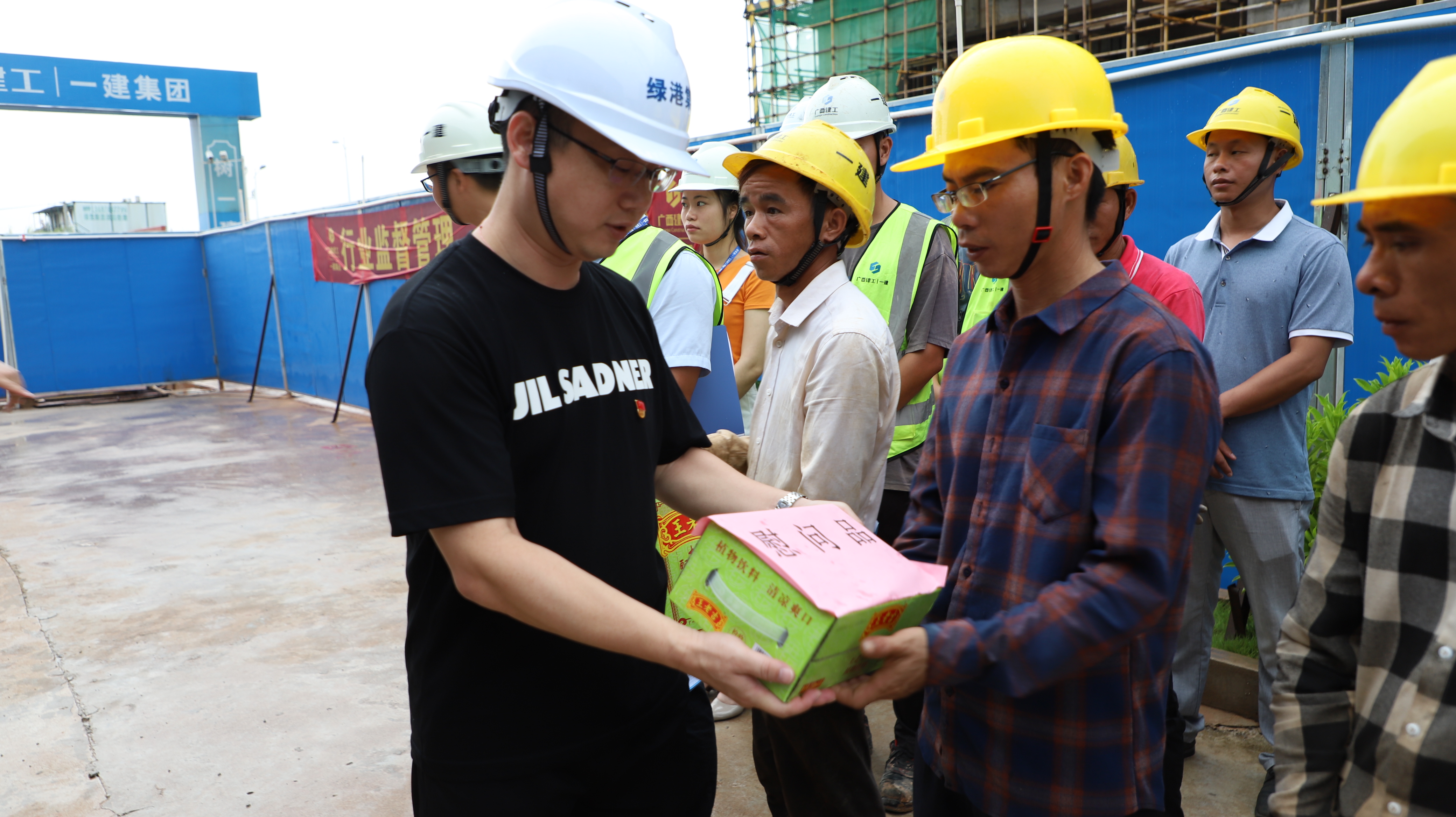集團黨委書記、董事長龔國強為工地的一線職工送上清涼慰問品