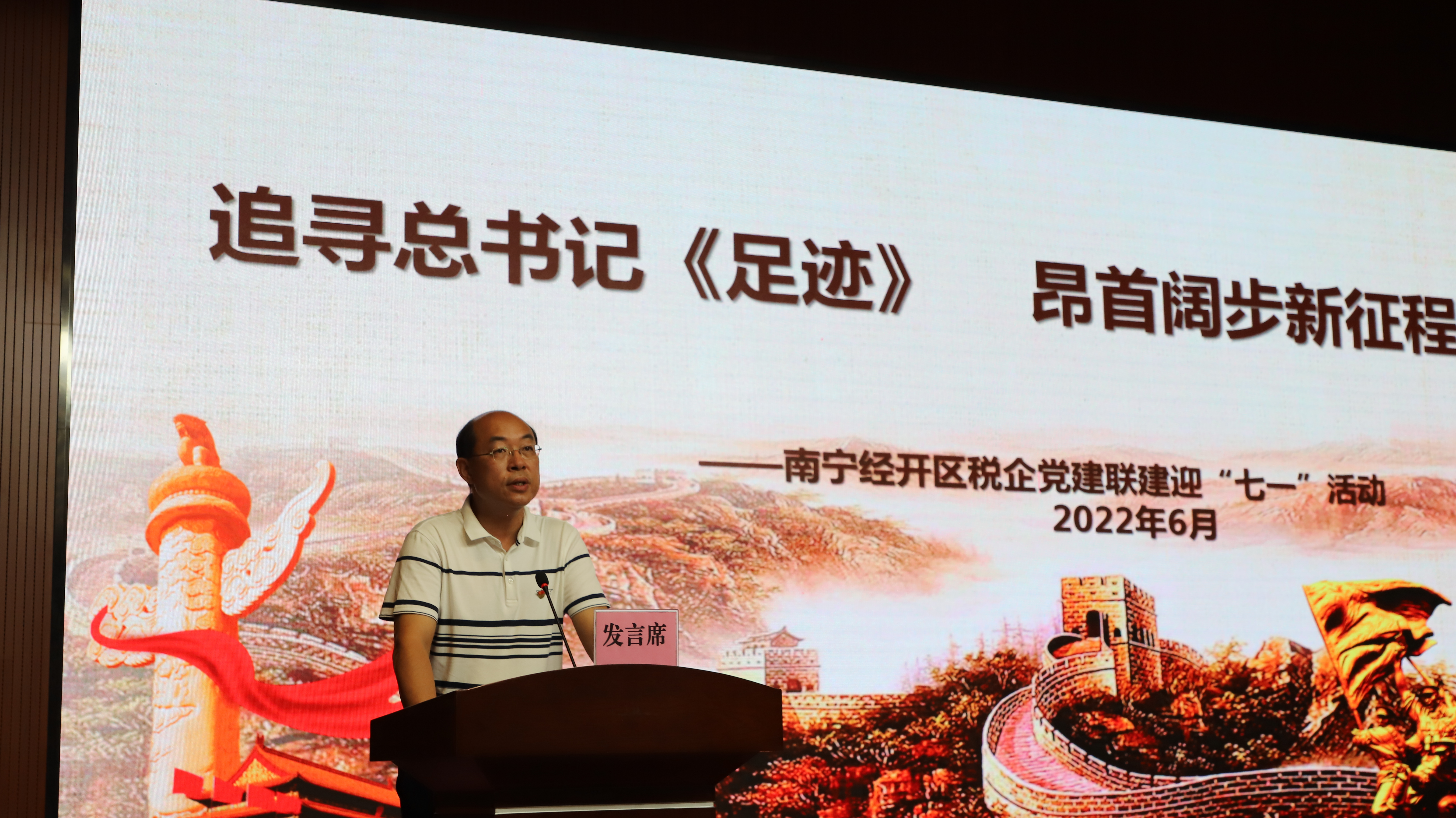 參加活動的全體黨員認真觀看央視《組合式稅費支持政策助企紓困成效顯現(xiàn)》視頻。經(jīng)開區(qū)稅務局黨委書記、局長胡大洪介紹稅務部門黨建引領促減稅降費落地落實,表示在貫徹落實黨中央、國務院稅費減免政策上,經(jīng)開區(qū)稅務局行動快速、措施有力,成立了留抵退稅“黨員突出隊”和“青年先鋒隊”,發(fā)揮黨團員先鋒和表率作用,確保國家的惠企政策落到實處,讓廣大市場主體充分、便捷地享受到政策紅利。綠港集團、中外運廣西有限公司陸運事業(yè)部、南寧恒楓飲料有限公司3個企業(yè)黨員代表分別上臺作交流。綠港集團榮鑫公司黨支部書記李汝埠表示,政策紅利也是中小企業(yè)發(fā)展的一大助力,今年4月份以來,我國實施組合式稅費支持政策,經(jīng)開區(qū)稅務局積極促進這一政策落地落實,作為綠港集團下屬的榮鑫公司切實享受到政策紅利,疫情防疫常態(tài)化的當下,不少中小企業(yè)都遇上許多難題,希望稅務部門在稅務方面著力為納稅人解難題,確保企業(yè)能享會享、應享盡享稅收優(yōu)惠政策。