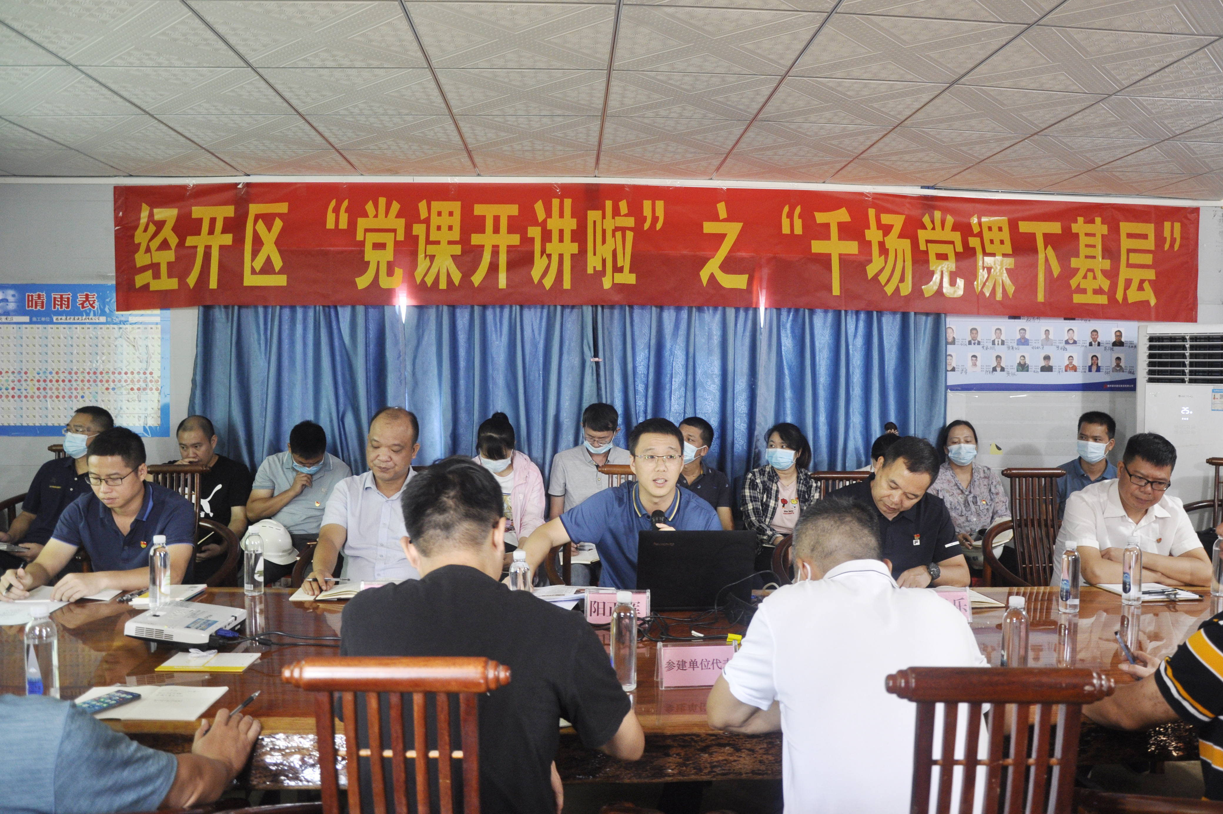 9月22日,科巨公司黨支部積極響應(yīng)經(jīng)開(kāi)區(qū)“黨課開(kāi)講啦”千場(chǎng)黨課下基層的號(hào)召,結(jié)合公司業(yè)務(wù)實(shí)際,深入?yún)芹祖?zhèn)3號(hào)路南延項(xiàng)目部開(kāi)展“主題黨課進(jìn)工地、提升管理增效益”主題活動(dòng)。集團(tuán)副總經(jīng)理、科巨公司黨支部書(shū)記陽(yáng)正輝為科巨公司黨支部全體黨員、吳圩片區(qū)在建項(xiàng)目部分參建單位代表約40人上了一堂接地氣又深入人心的黨課。