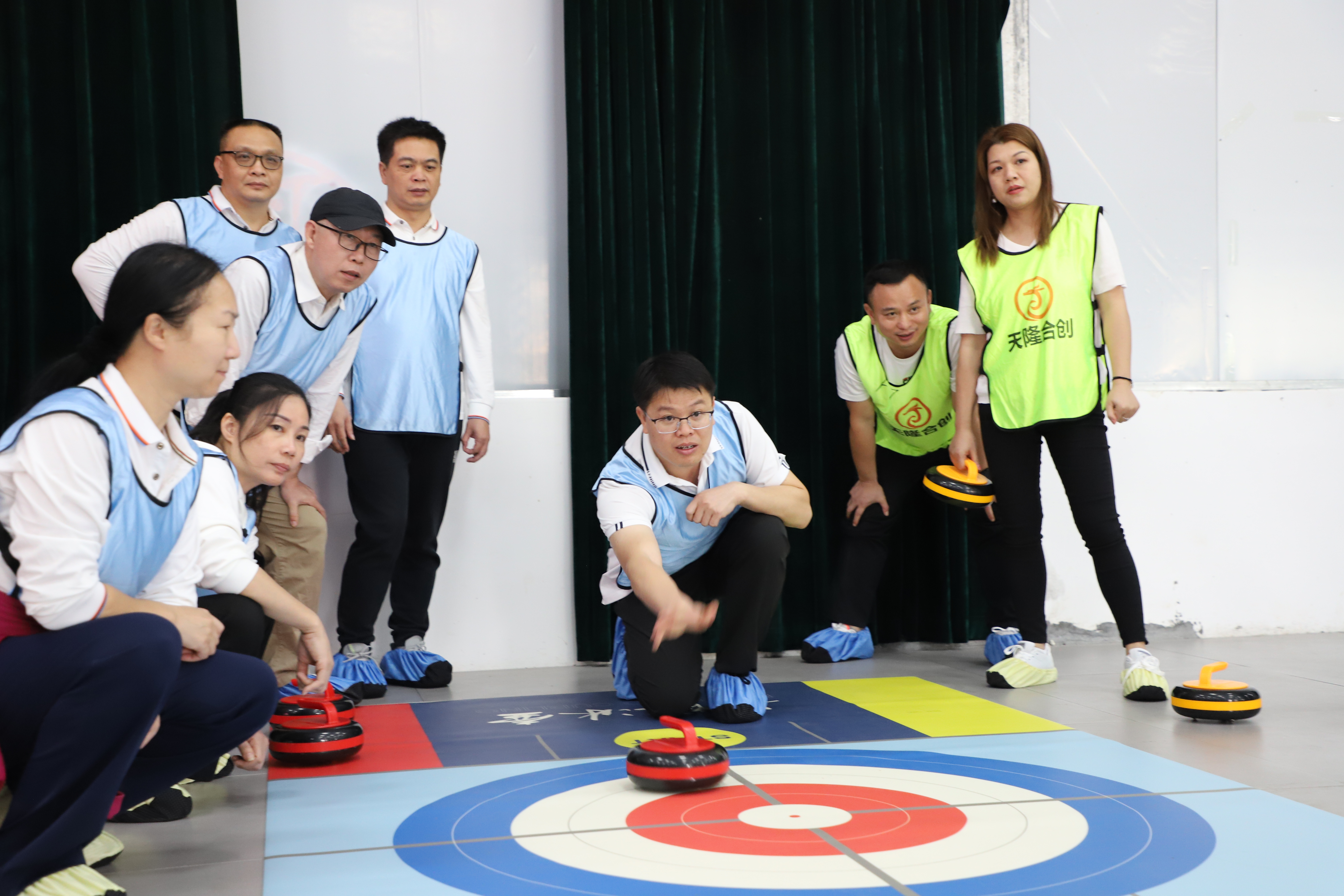當天下午,參訓(xùn)人員分成六個小分隊開展了冰壺素質(zhì)拓展比賽。手握把手、單膝觸地、精準一推……比賽現(xiàn)場,選手們?nèi)褙炞?,和隊友商討?zhàn)術(shù)、默契配合,大家你來我往、斗智斗勇,每一次冰壺相互碰撞都激起一片歡呼聲和掌聲,充分展現(xiàn)出綠港集團中高層管理著積極向上、奮力拼搏、團結(jié)協(xié)作的精神風(fēng)貌。
