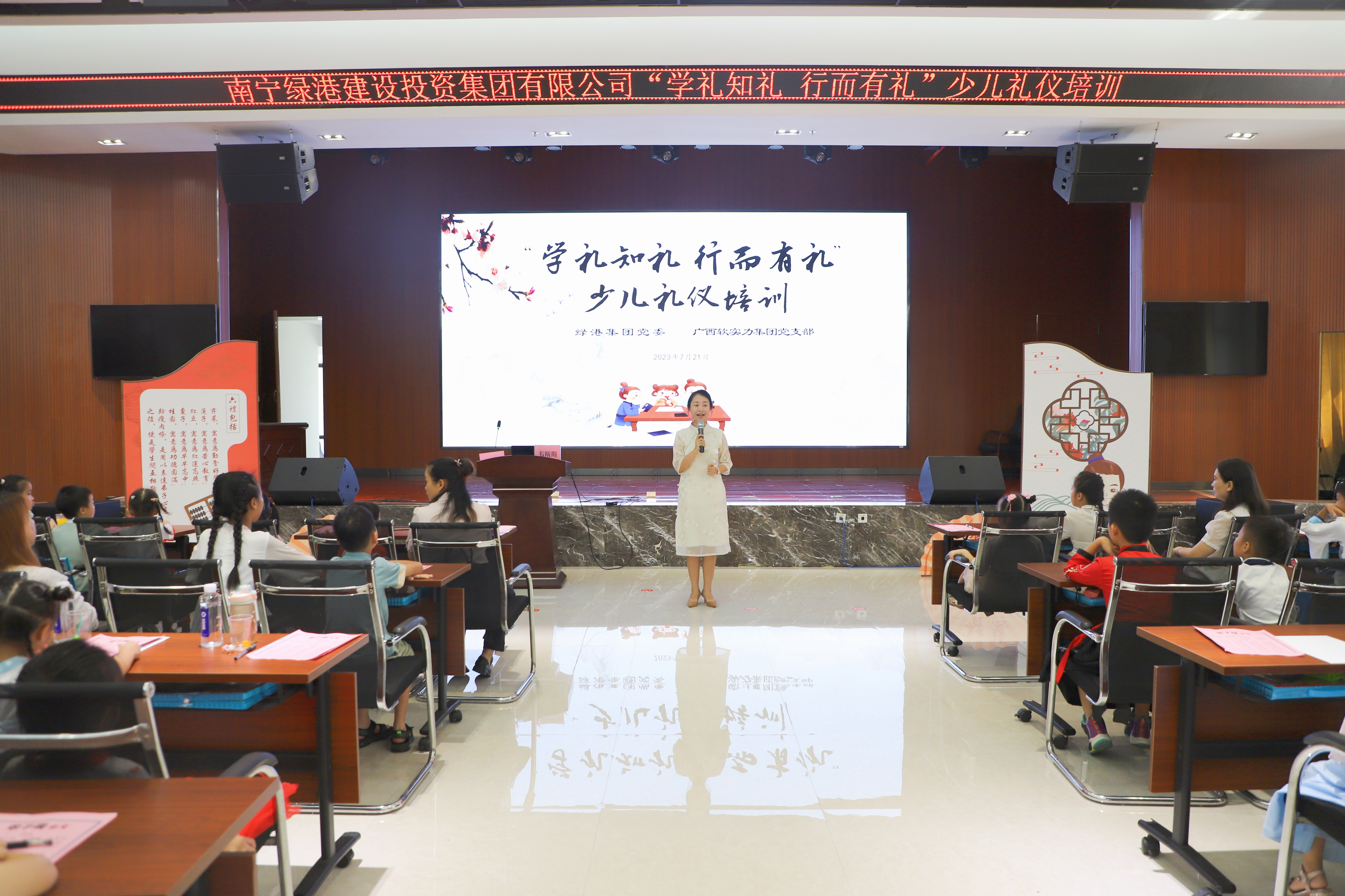 為深化拓展新時代文明實踐活動,更好地傳承和弘揚優(yōu)秀中華文化,加強未成年人思想道德教育,讓孩子們從小講文明、知禮儀,提升素養(yǎng)。7月21日,綠港集團黨委、工會、關(guān)工委聯(lián)合組織開展“學(xué)禮知禮·行而有禮”少兒禮儀培訓(xùn)為主題的暑期學(xué)堂活動。集團黨委委員、副總經(jīng)理黃麗琴致辭。活動共有60多位職工及少兒參加。
