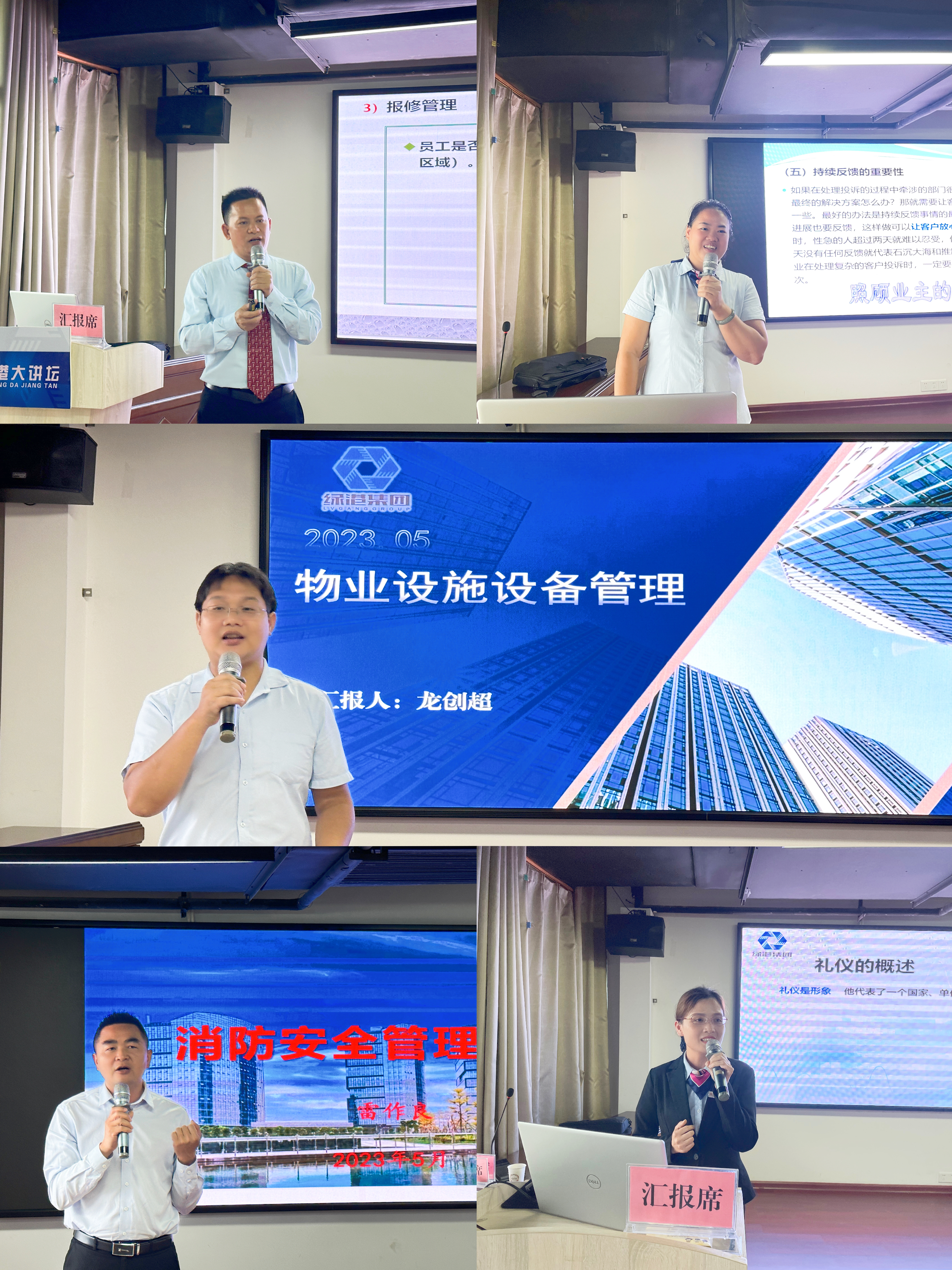 匯報會上,學員們分別結合個人的日常學習體會、感受,對各自在項目管理的所見所聞、所思所想逐一進行整理,從所學習的物業(yè)服務意識、催費技巧、服務禮儀、設施設備管理、安全管理等方面制作成PPT并進行了詳細的匯報和分享,體會深刻,學習感受頗深,達到了 “一人學習,眾人受益,共同提升”的目的,會場掌聲不斷,大家受益匪淺。來自銀凱孵化園物業(yè)服務中心的客服經理付正豪獲得了匯報會第一名的好成績,他表示會進一步明晰目標任務,抓好學習成果轉化,以學促知、以知促行,為項目日常管理工作提供切實有效的幫助,與同事們一起為公司的健康發(fā)展貢獻綿薄之力。